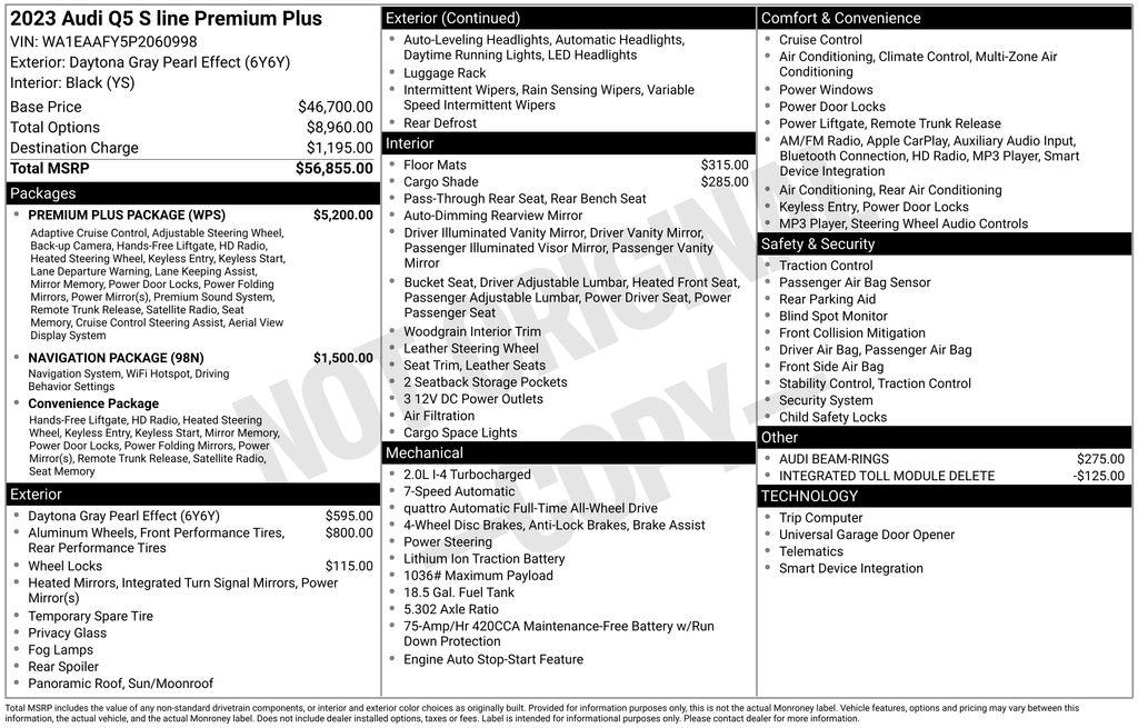 Elevate your driving experience with the advanced technology and premium amenities of this 2023 Audi Q5 45 S line Premium quattro. Schedule a test drive today and discover the true meaning of luxury and performance.