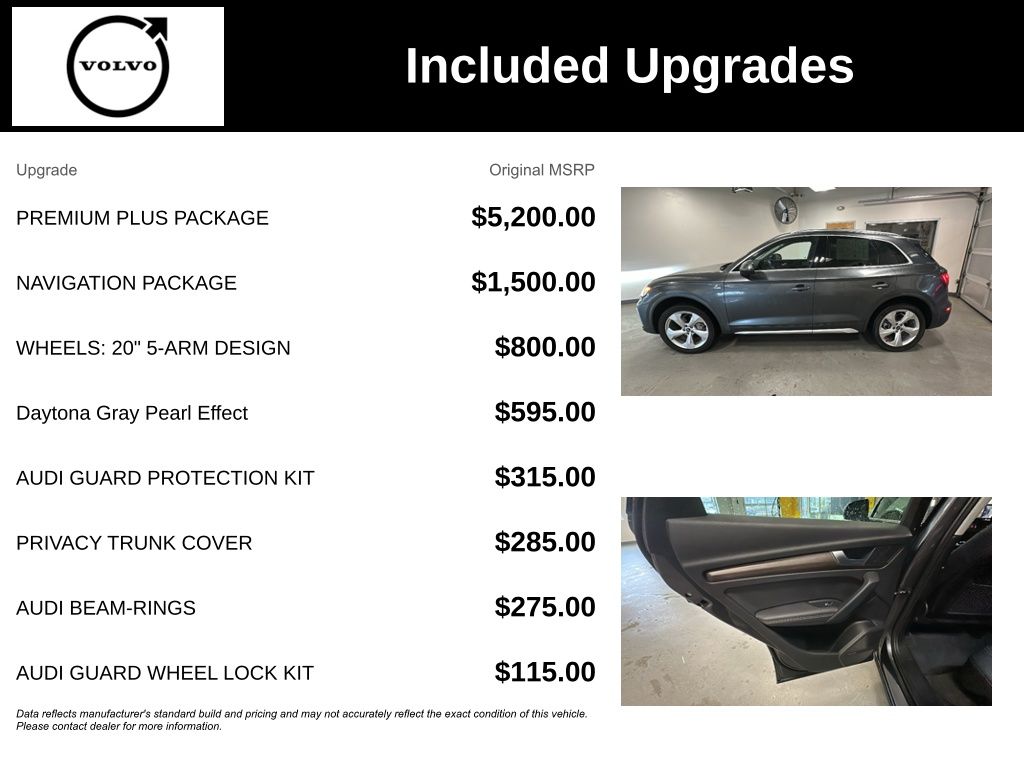 Powered by a responsive 2.0L Turbocharged engine paired with a 7-Speed Automatic S tronic transmission and quattro all-wheel drive, this Audi Q5 delivers a dynamic and confident driving experience. With an EPA-estimated 22 city / 29 highway MPG, you'll enjoy exceptional efficiency without compromising performance.